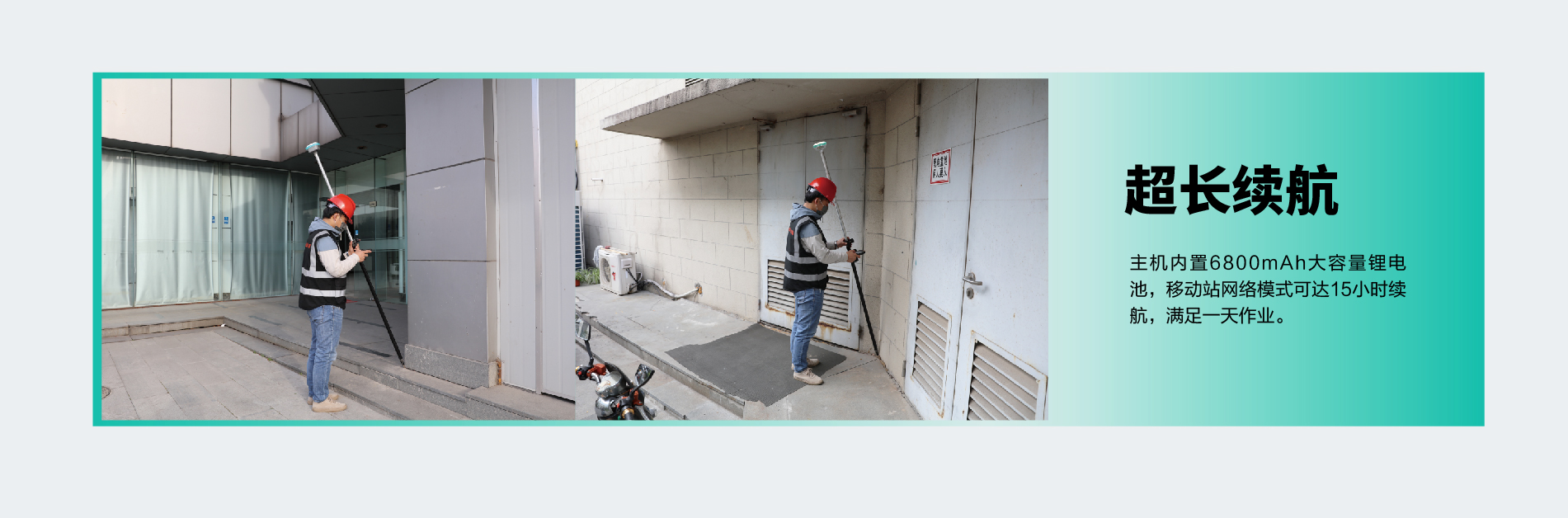 內(nèi)置6800mAh鋰電池,支持移動站15小時續(xù)航 |